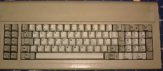 This Victor keyboard is very similar. The keypad is separated here, and the Esc key has been moved to the keypad. The frontside of the ScrollLock key says Break. It resembles an AT keyboard but has only 83 keys, the SysRq is still missing.